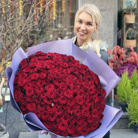 Flower box 'With love' - a luxurious composition of 51 different types of roses. It can be a pleasant surprise for a loved one on a holiday or a significant date.